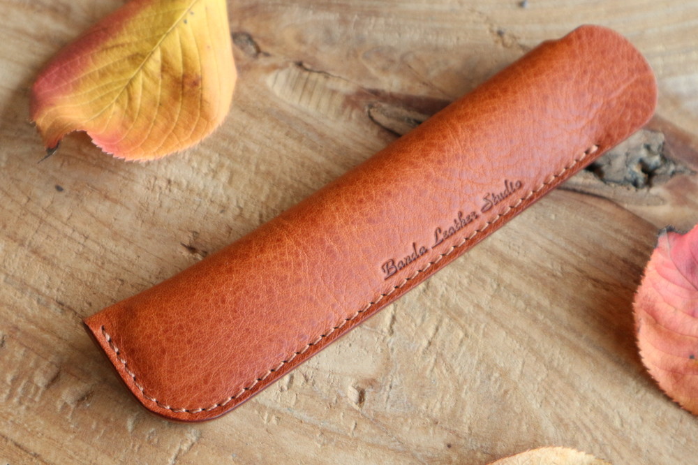 심플하면서 간단하게 소중한 펜, 만년필을 수납 할 수 있게 디자인한 펜파우치, 케이스 입니다. 펜케이스에 곡선 라인을 주어 심플한 라인을 갖도록 하였고, 케이스의 좌측엔 클립 부분을 맞춰 펜이나 만년필을 수납할 수 있게 라인 홈을 주었습니다. 미네르바 복스란 밀링타입의 베지터블 가죽을 사용해 손에 닿는 촉감, 터치감이 부드럽고 가죽의 유분으로 사용할 수록 에이징되어 소중한 펜과 함께 애착이 가는 케이스가 될 것 입니다.