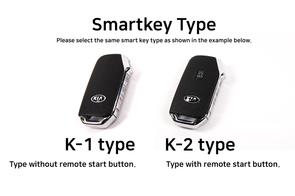 Kia Motors' side button smart key is divided into two types: a smart key with a remote start button and a key without. You can order it according to the smart key type in the option when ordering. Both smart key types are available, the difference is divided by the hole in the remote start button position.