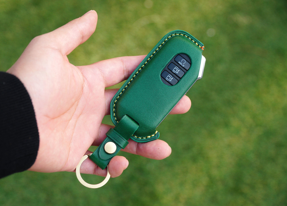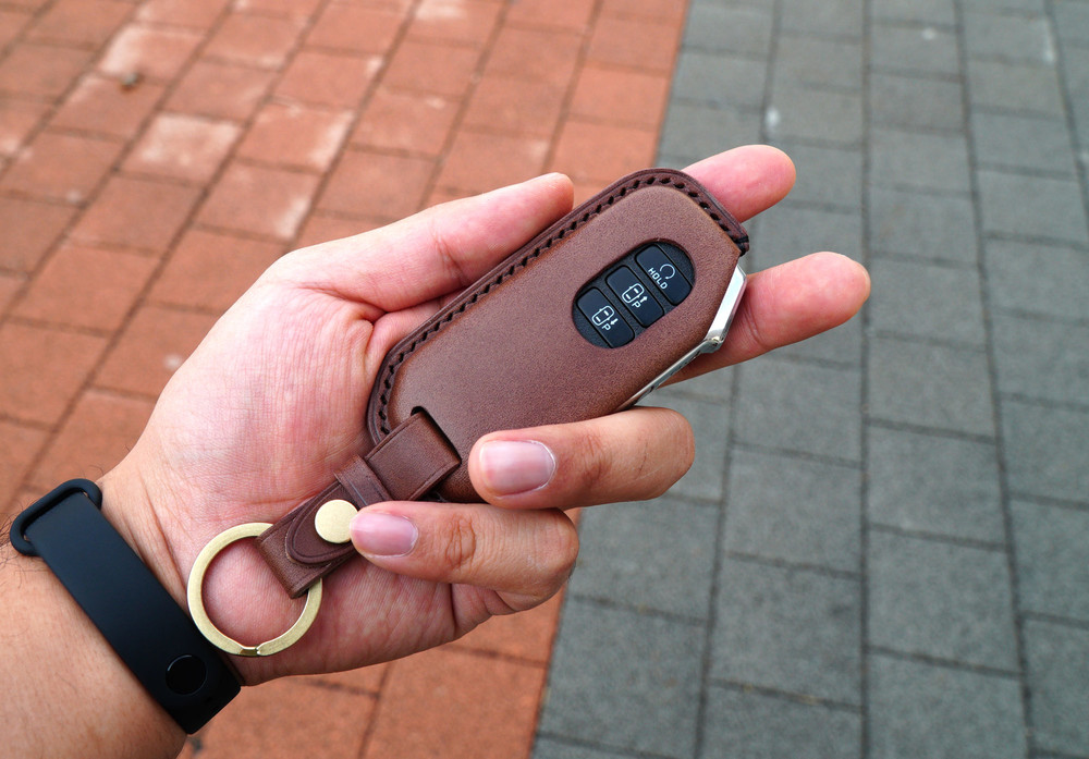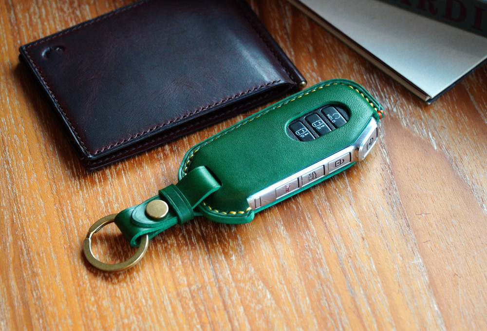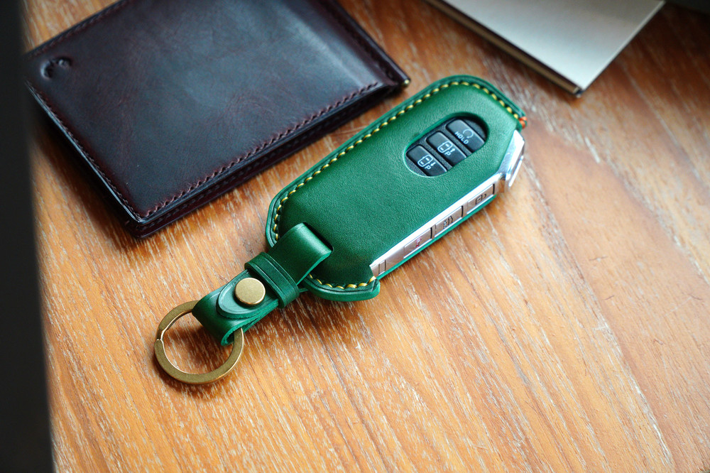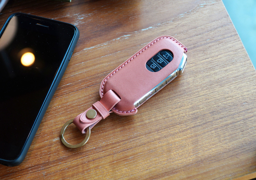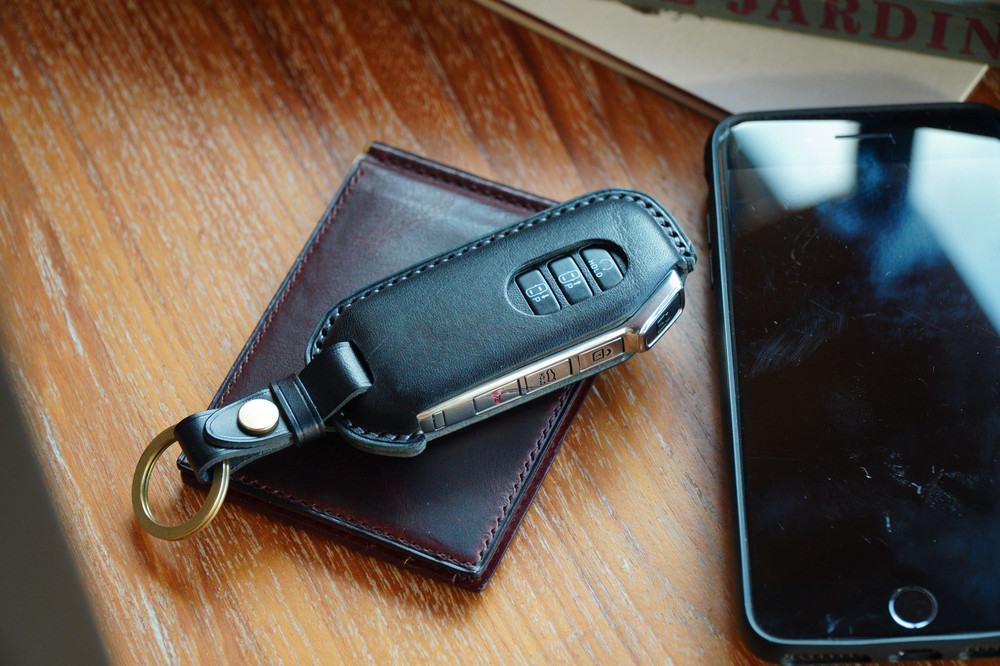 This is KIA Sorento, K5 etc.. smart car key leather case. Leather molding techniques allow you to create the same shape as the Smart key and fit perfectly into the Smart car key as if you are wearing customized clothes. The leather and subsidiary materials used in the production are Art.Buttero Vegetable Leather and brass. The luxurious buttero leather and brass decorations are a combination of materials that give a good impression of leather products, and the aging leather and brass will make the world my only cherished item.