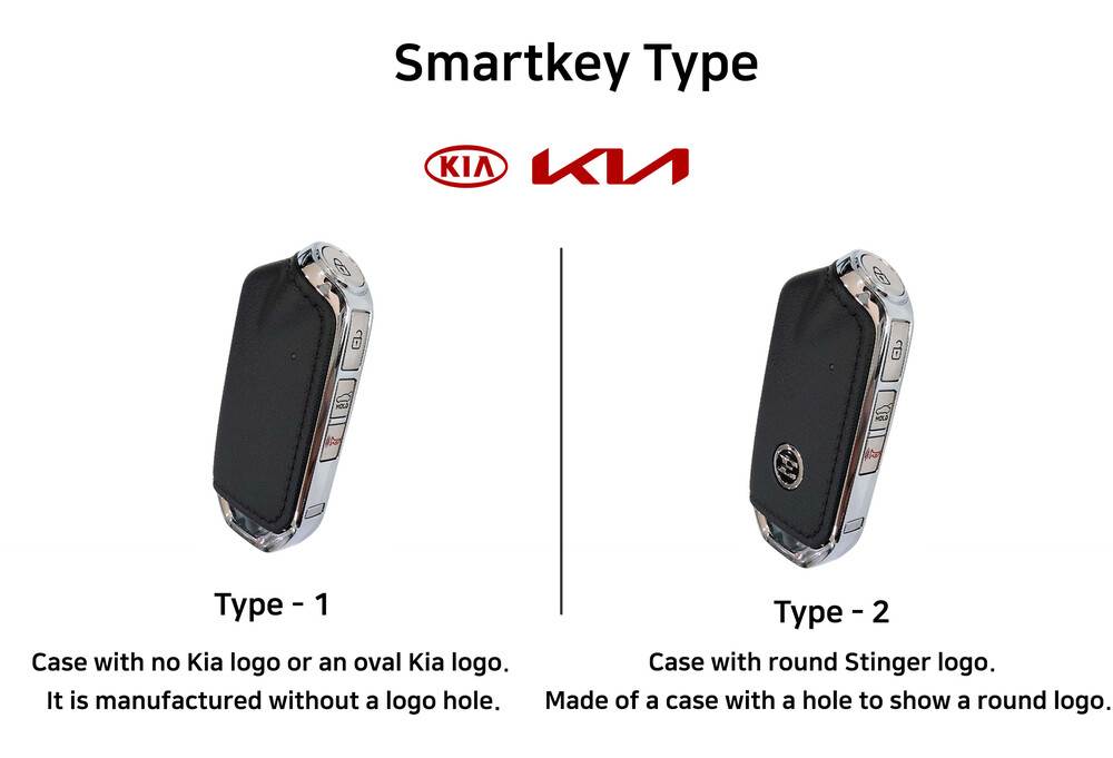 Kia Motors Stinger and K9 Key are divided into two types. When ordering, you can order according to the type of smart key in the option. The difference between the two types is the difference between the Stinger logo and the punching. Type-1 is manufactured by covering the logo part, and Type-2 is manufactured by a Stinger logo and a circular punching. Both smart keys are available. If you want to cover the logo of the Stinger Smart Key, you can choose Type-1.
