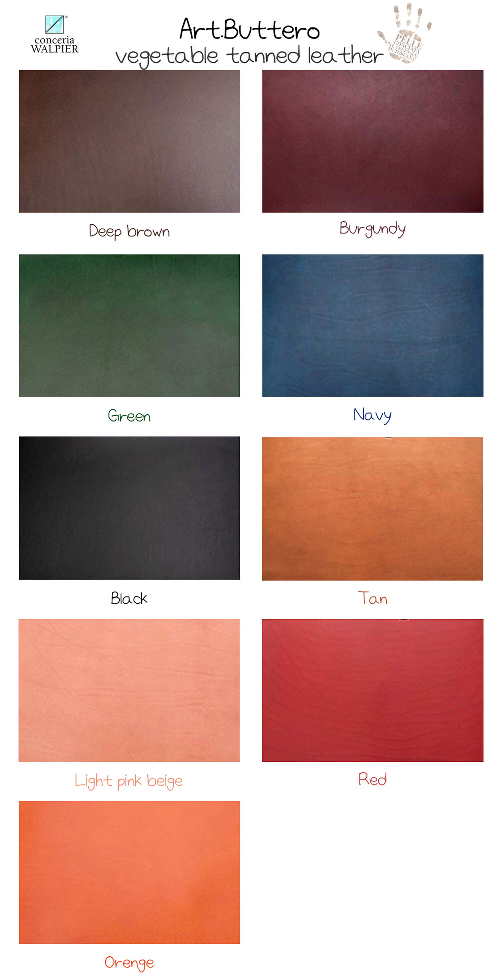 Buttero is a leather manufactured in WALPIER TANNERY, Italy.""WALPIER" is Tannery, a 100% French one-skin processing company founded in 1973 and has been working on leather for the third generation. Tannery, also registered with the VERA PELLE Association, is also the best in Italy for its traditional and long experience with vegetable processing. Buttero is an amule that has a high level of oil on the surface of the leather that has secured some of the vegetable leather's weaknesses, and can be seen as a leather that is dense, dense, smooth, and soft.