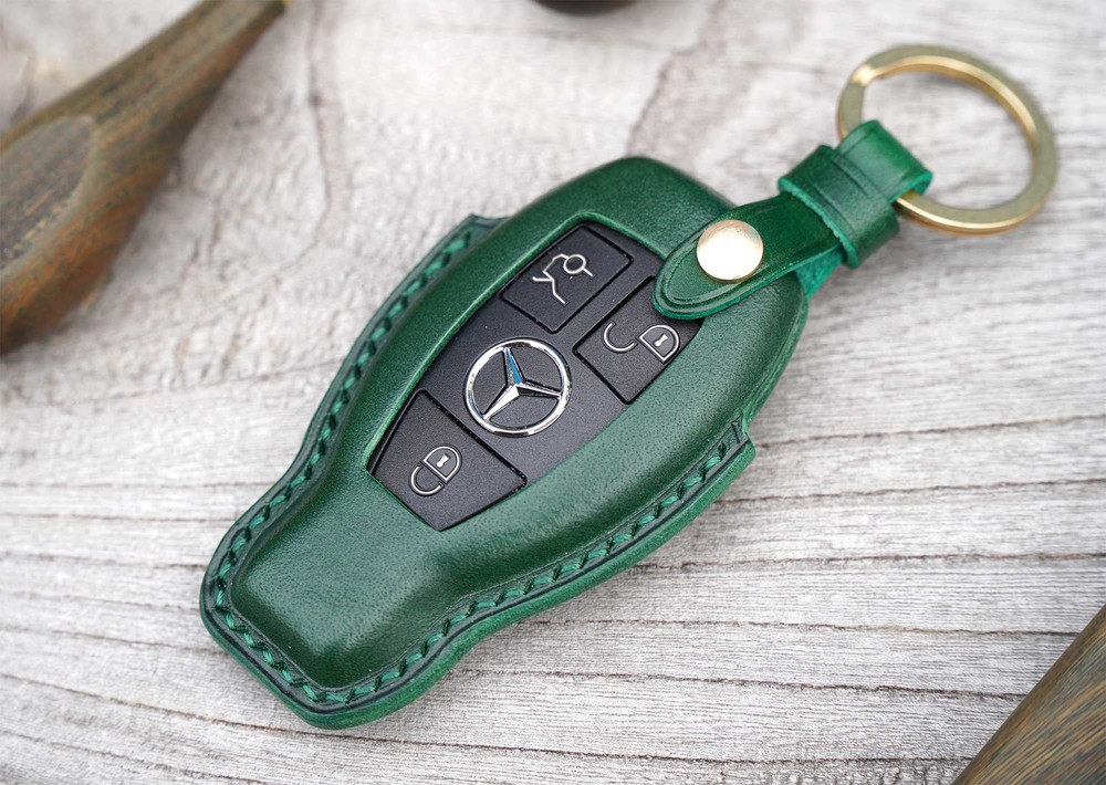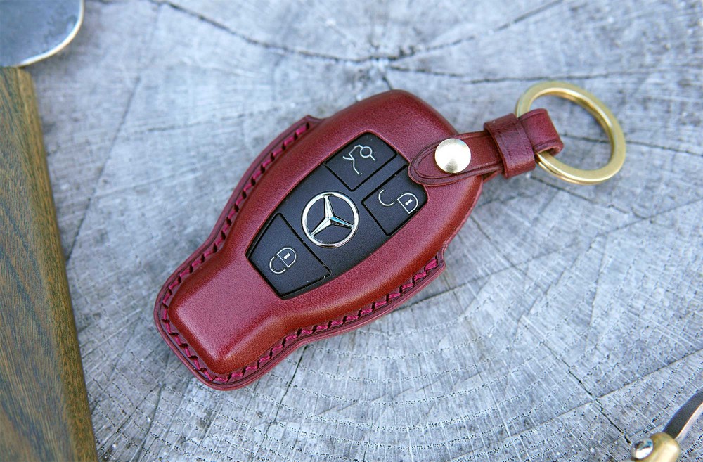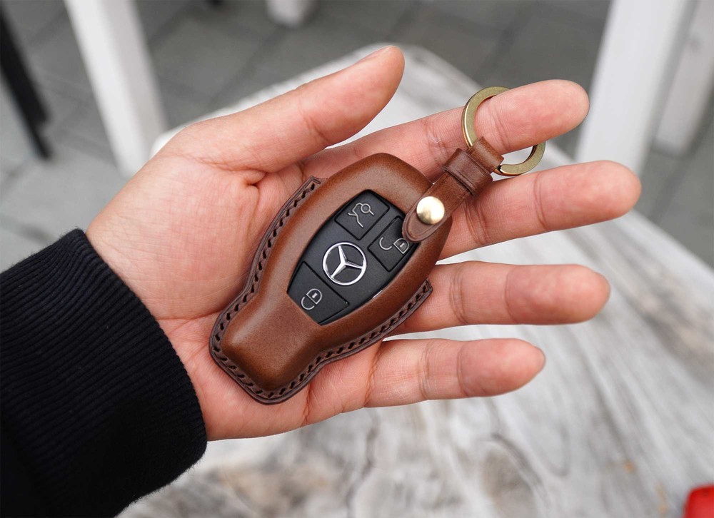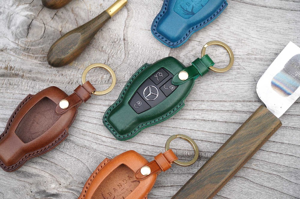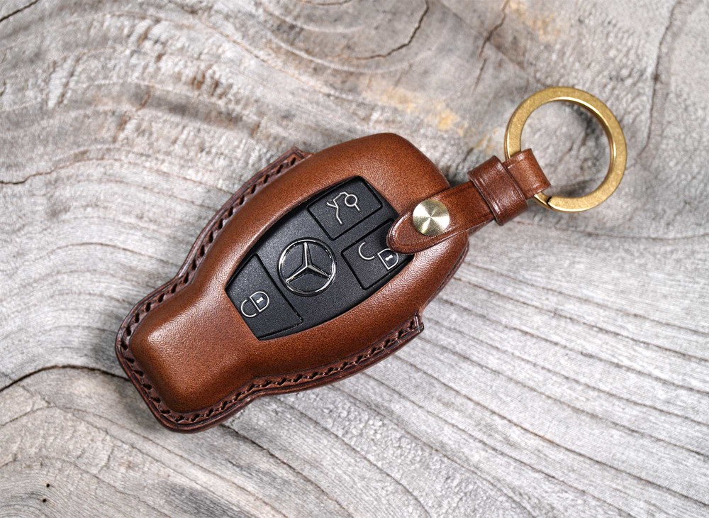 This is BENZ old version smart car key leather case. Leather molding techniques allow you to create the same shape as the Smart key and fit perfectly into the Smart car key as if you are wearing customized clothes. The leather and subsidiary materials used in the production are Art.Buttero Vegetable Leather and brass. The luxurious buttero leather and brass decorations are a combination of materials that give a good impression of leather products, and the aging leather and brass will make the world my only cherished item.