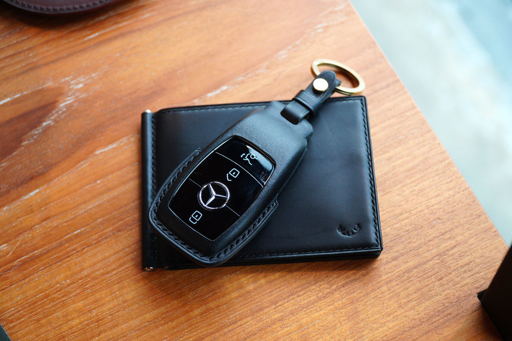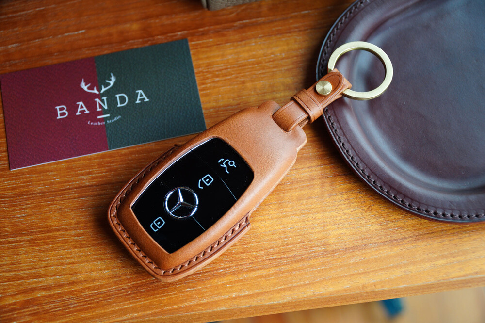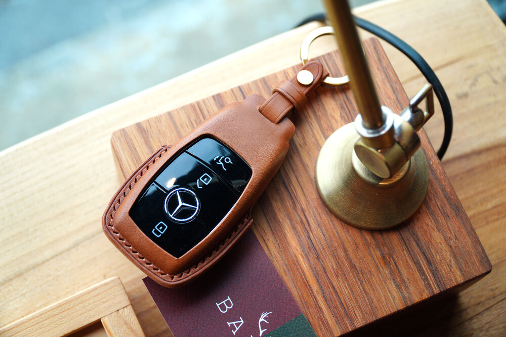 This is BENZ new version smart car key leather case. Leather molding techniques allow you to create the same shape as the Smart key and fit perfectly into the Smart car key as if you are wearing customized clothes. The leather and subsidiary materials used in the production are Art.Buttero Vegetable Leather and brass. The luxurious buttero leather and brass decorations are a combination of materials that give a good impression of leather products, and the aging leather and brass will make the world my only cherished item.