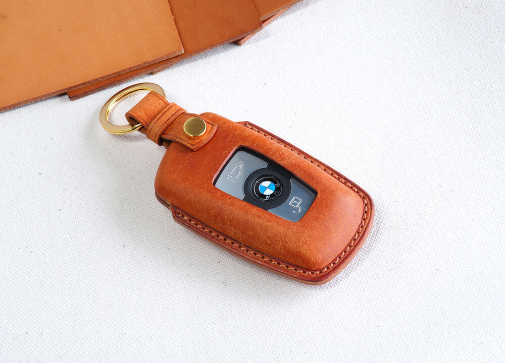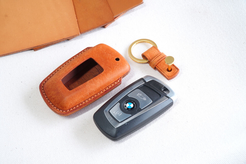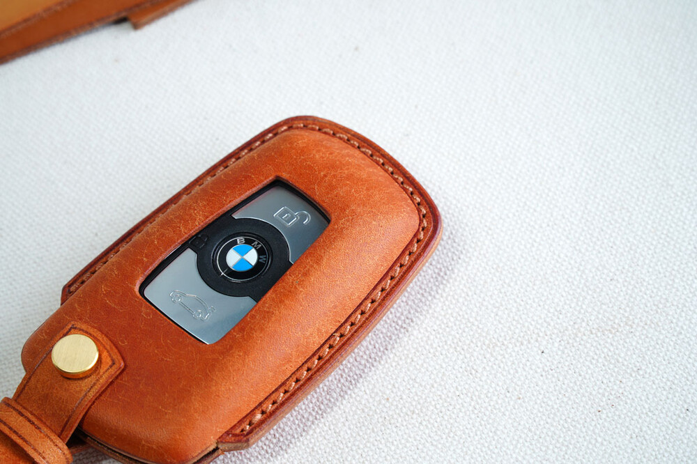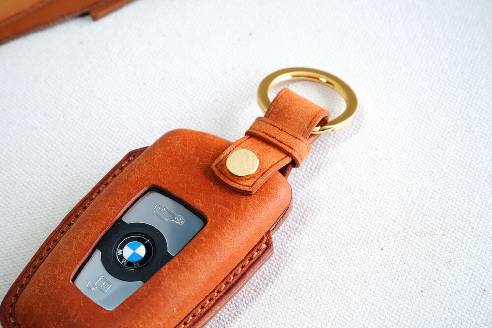 This is BMW car smart key leather case. Through leather molding techniques, it is made in the same shape as the smart key, so you can feel a stable grip and fit as if you are wearing customized clothes. The leather and subsidiary materials used in the production are Art. Pueblo veggie leather and domestic high-quality plated subsidiary materials. Pueblo leather and satin gold and nickel decoration with a unique touch and luxurious color are the best combination to highlight the key case.