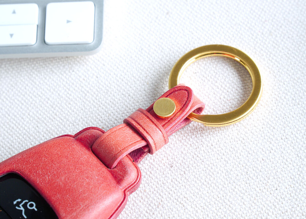 It is a handle key holder made of the same leather as the key case leather. It is a luxurious key holder made of vegetable leather lining, not single-sided leather. You can imprint in English, and you can also imprint your contact information and car number.