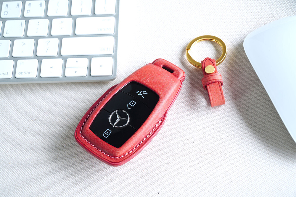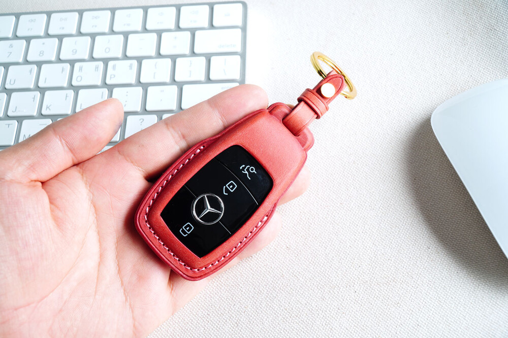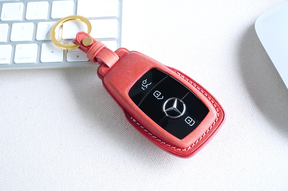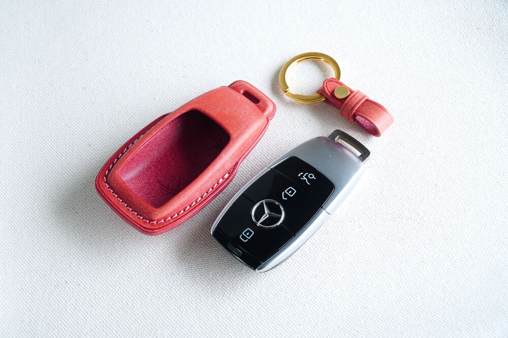 This is BENZ New Benz car smart key leather case. Through leather molding techniques, it is made in the same shape as the smart key, so you can feel a stable grip and fit as if you are wearing customized clothes. The leather and subsidiary materials used in the production are Art. Pueblo veggie leather and domestic high-quality plated subsidiary materials. Pueblo leather and satin gold and nickel decoration with a unique touch and luxurious color are the best combination to highlight the key case.