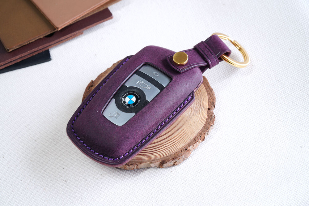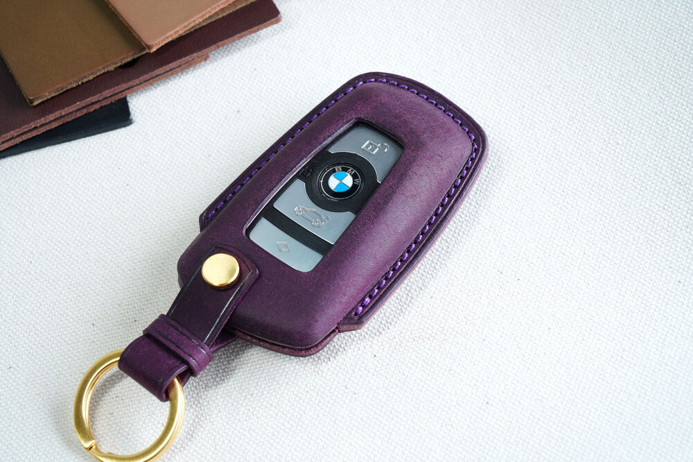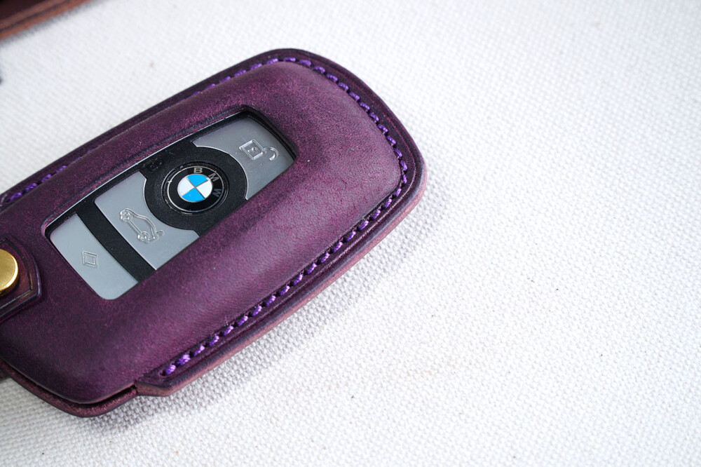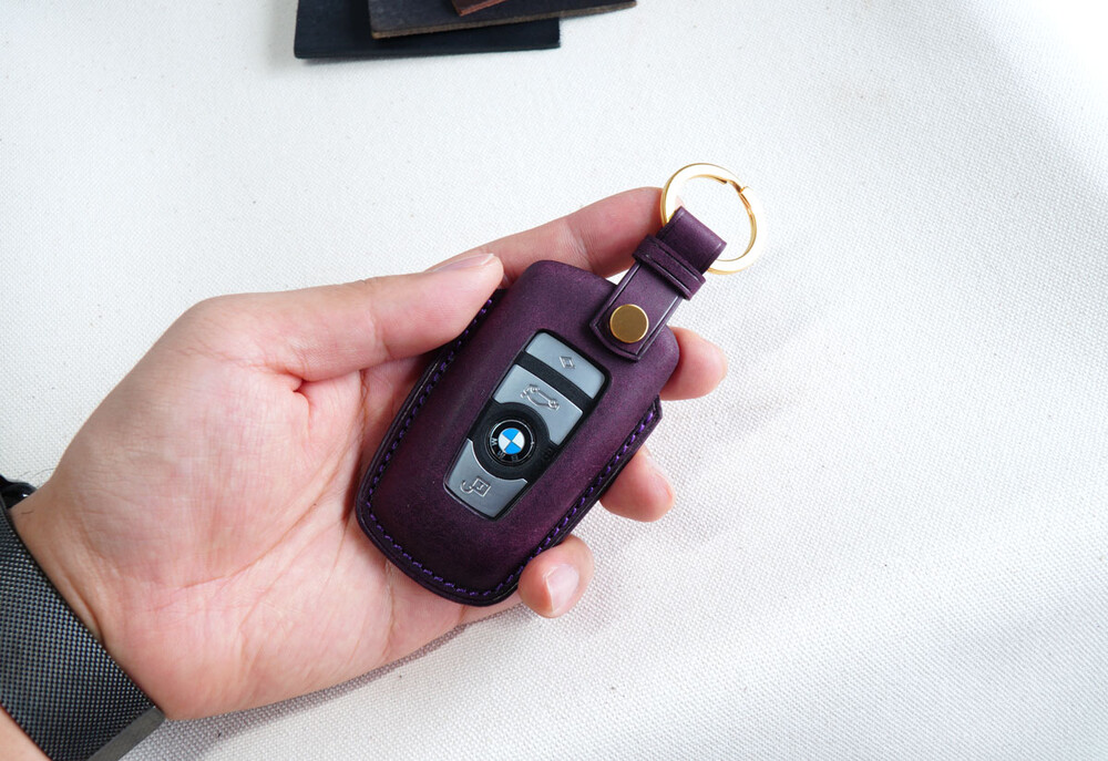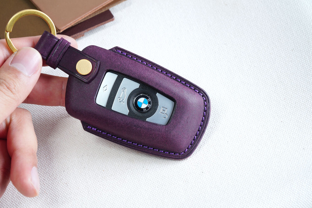 This is BMW car smart key leather case. Through leather molding techniques, it is made in the same shape as the smart key, so you can feel a stable grip and fit as if you are wearing customized clothes. The leather and subsidiary materials used in the production are Art. Pueblo veggie leather and domestic high-quality plated subsidiary materials. Pueblo leather and satin gold and nickel decoration with a unique touch and luxurious color are the best combination to highlight the key case.