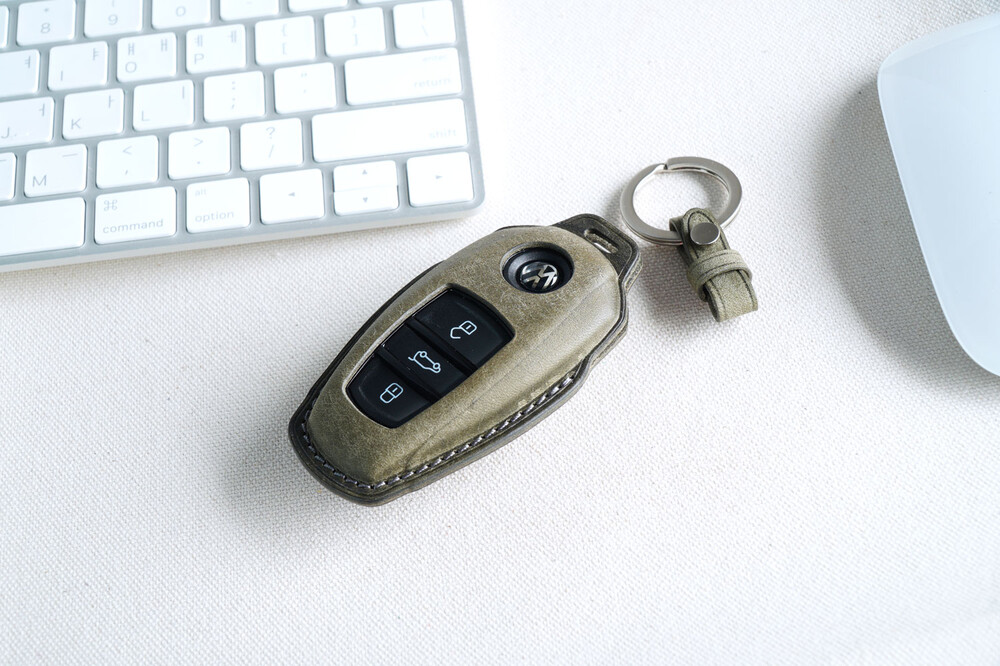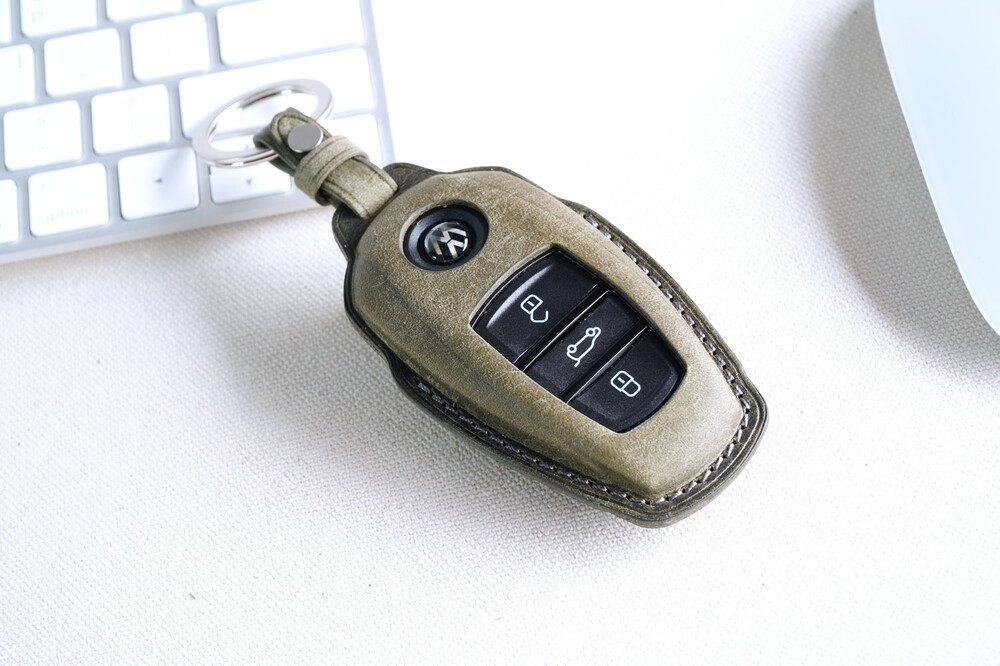 This is VOLKSWAGEN car smart key leather case. Through leather molding techniques, it is made in the same shape as the smart key, so you can feel a stable grip and fit as if you are wearing customized clothes. The leather and subsidiary materials used in the production are Art. Pueblo veggie leather and domestic high-quality plated subsidiary materials. Pueblo leather and satin gold and nickel decoration with a unique touch and luxurious color are the best combination to highlight the key case.