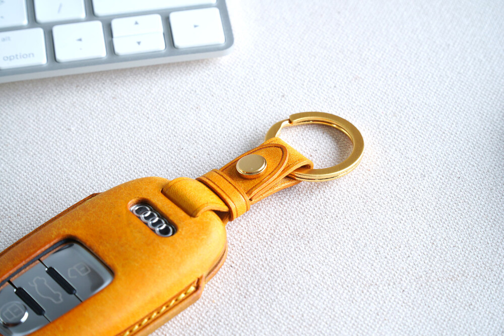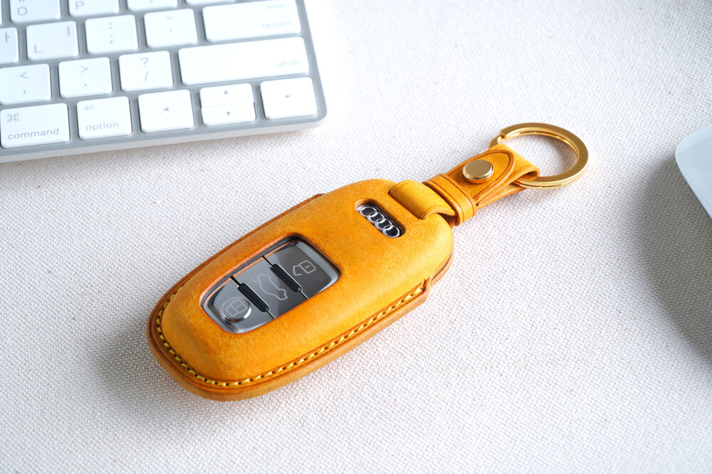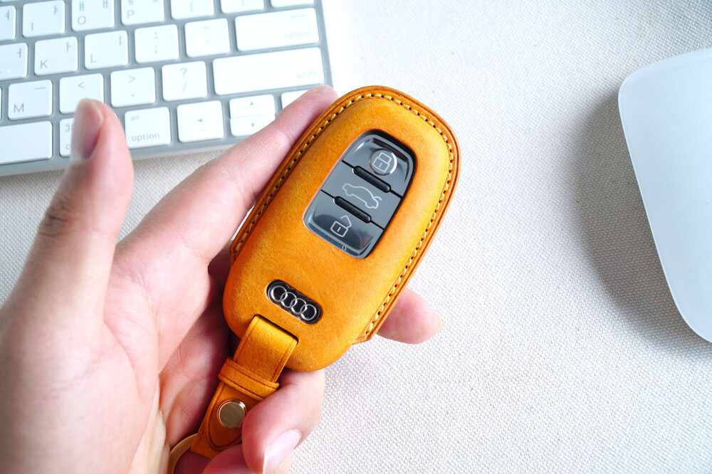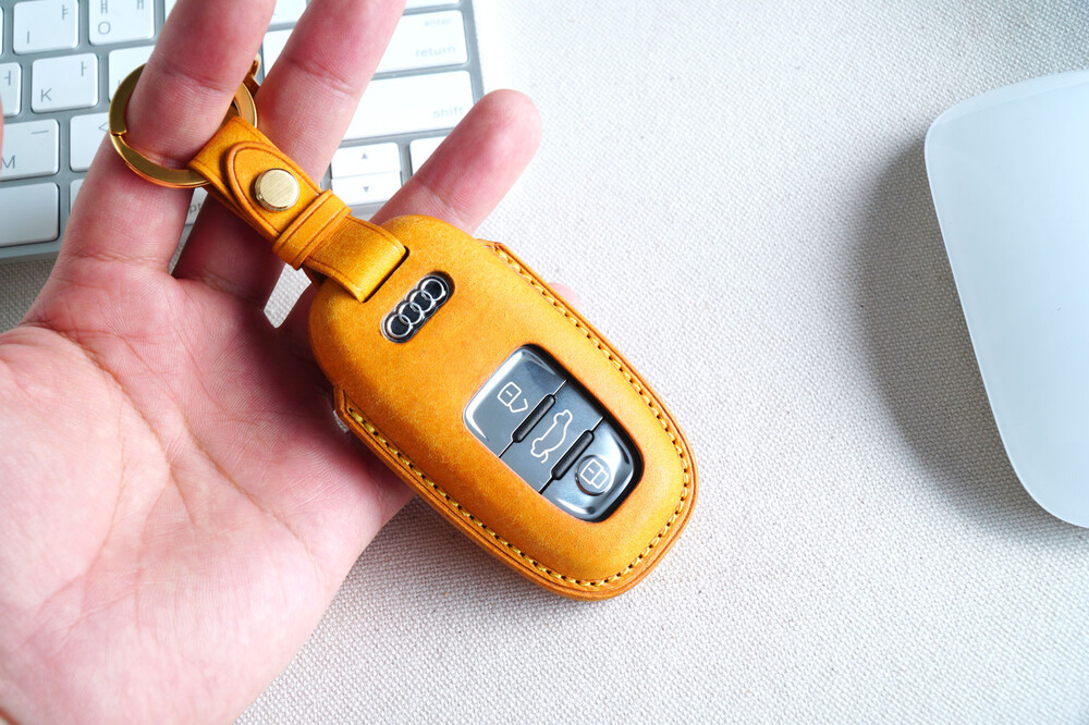 This is AUDI car smart key leather case. Through leather molding techniques, it is made in the same shape as the smart key, so you can feel a stable grip and fit as if you are wearing customized clothes. The leather and subsidiary materials used in the production are Art. Pueblo veggie leather and domestic high-quality plated subsidiary materials. Pueblo leather and satin gold and nickel decoration with a unique touch and luxurious color are the best combination to highlight the key case.