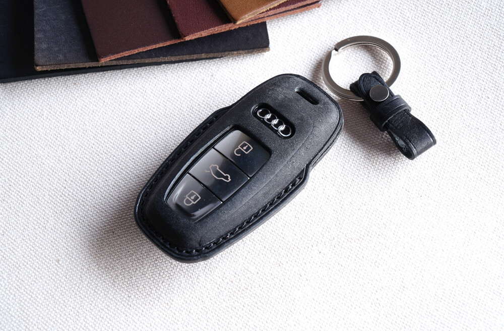 This is AUDI car smart key leather case. Through leather molding techniques, it is made in the same shape as the smart key, so you can feel a stable grip and fit as if you are wearing customized clothes. The leather and subsidiary materials used in the production are Art. Pueblo veggie leather and domestic high-quality plated subsidiary materials. Pueblo leather and satin gold and nickel decoration with a unique touch and luxurious color are the best combination to highlight the key case.