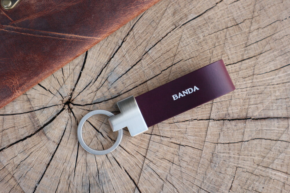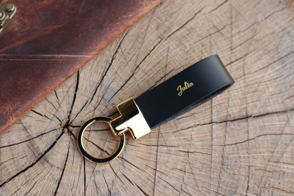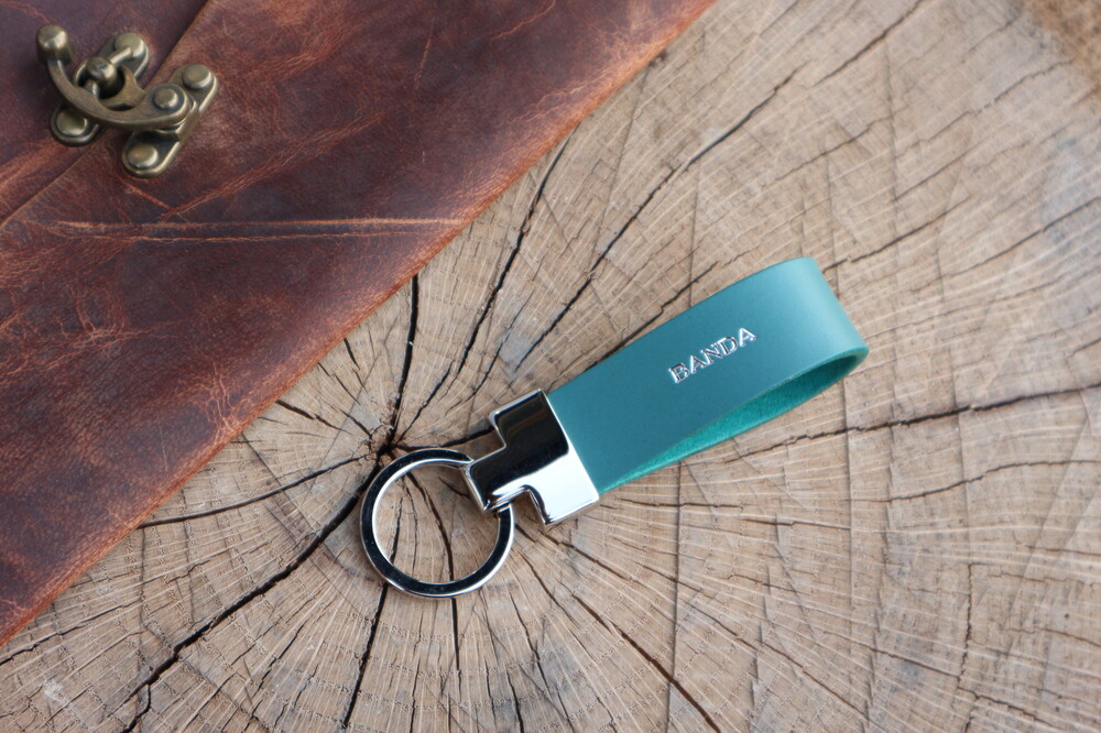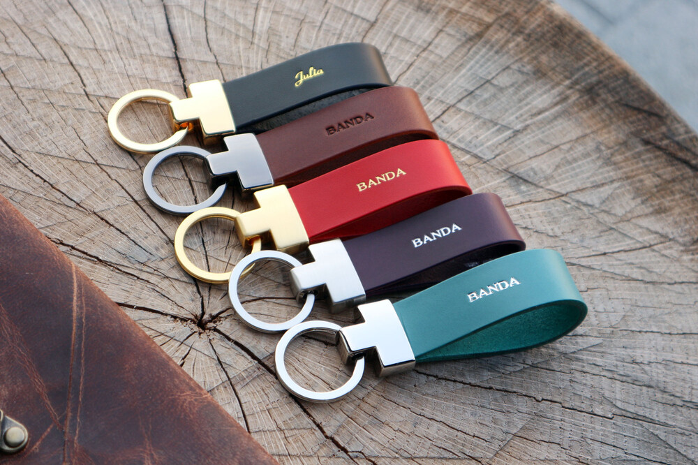 Personalized leather keychain.