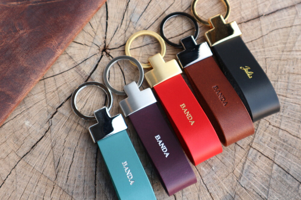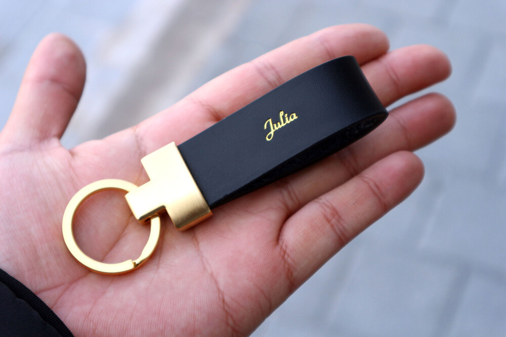 This is a leather key ring that can be personalized. It is made of 3mm thick natural leather, so it is luxurious and sturdy. These key chains make great gifts for couples, people moving into new homes, and people who bought new cars. It's good to give a meaningful gift because you can imprint a special message on the key ring.