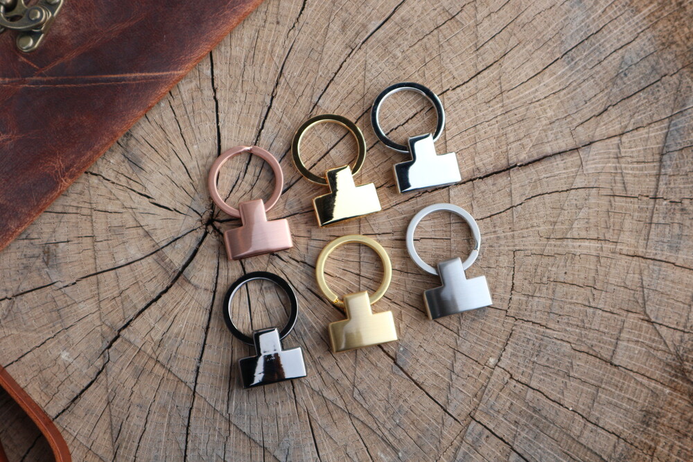 Keychain hardware colors are available in Gold, Gold Satin(matte), Nickel, Nickel Satin(Matte), Pink Gold Satin, and Black Nickel options.